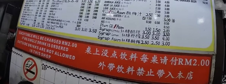 “桌上没点饮料请付RM2” 网传茶餐室告示牌照片掀议