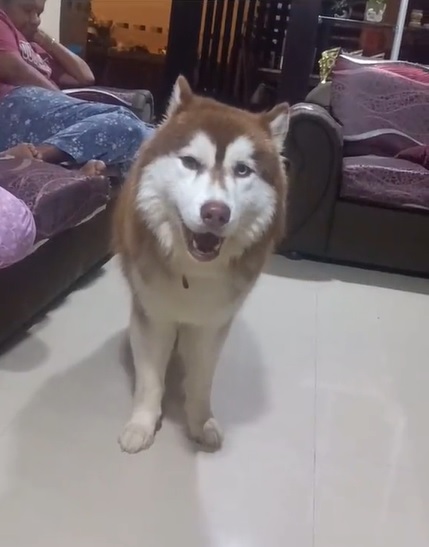 一名印裔男子苏拉斯日前在屋子的客厅里,以淡米尔文对饲养的爱犬哈士奇Karnan说话,要它乖乖回房睡觉,而哈士奇全程关注聆听,还会向主人撒娇和回应主任每一句话,让人直呼好通人性。