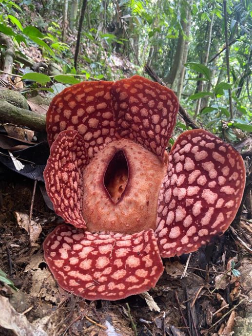 回想起这几十年来为了目睹这花王的风采,我和老伴好几次在山林中穿行寻找,但总是与它擦身而过。记得20年前听说务边(Gopeng)山林中可以寻获莱佛士花,老伴和我就约了几位好友,兴致勃勃地翻山越岭寻花去了。我们在崎岖难行的山林里,时而踏着潮湿的泥泞山路,加上水蛭、蚊虫的骚扰,忙乱了一整天,最终还是一无所获,老伴还不小心在途中被藤蔓绊倒,重重地摔了一跤!