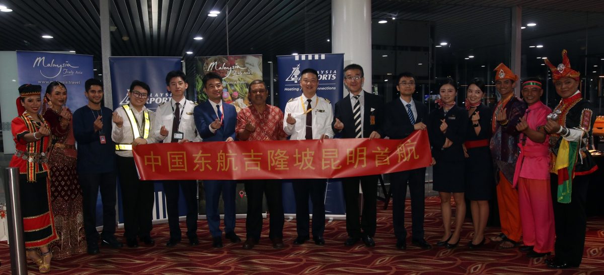 从中国昆明抵达吉隆坡国际机场(KLIA)的MU9629 航班,也是中国东方航空直飞首航,于今晚9时30分抵达机场,共141名航班乘客也成了该公司新航线的首批乘客。