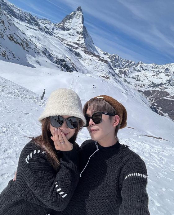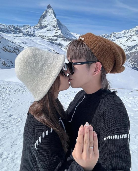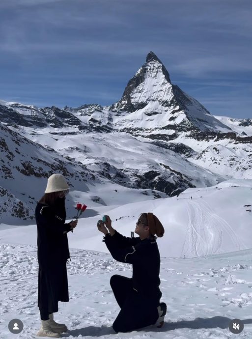 (八打灵再也21日讯)Geraldine颜慧萍被求婚成功!她与爱情长跑14年的发型师男友Samuel Ting在瑞士马特洪峰(Matterhorn)雪山的见证下,感动泪喊:“我愿意!”