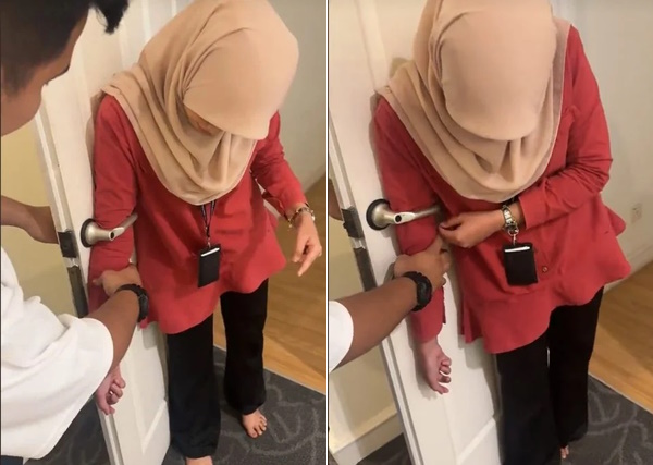 (吉隆坡21日讯) 罕见的意外!一名巫裔女子竟然将手臂卡在门把处,不管怎么奋力挣脱都于事无补,让同事们哭笑不得。