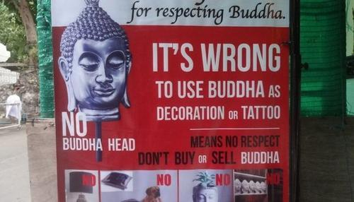 “多年来,佛像已经被过度商业化,有些商家可能不知道这样做不妥,但也有人故意这么做,所以我们决定要站出来发声!”这样的广告牌,也出现在考山路、恰都恰周末市集等纪念品集散地,