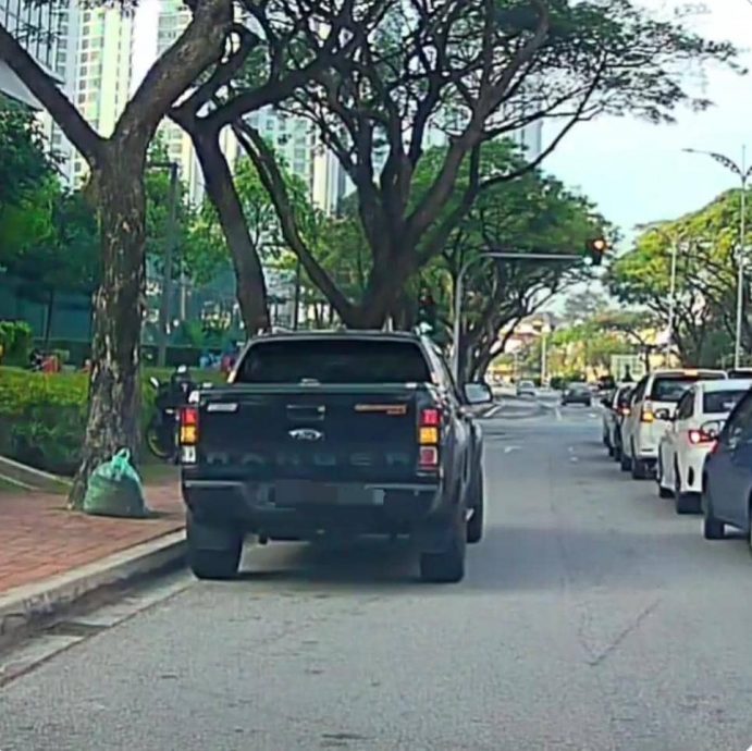 (八打灵再也23日讯)男子不顾后方轿车鸣笛,执意将货卡停在路旁阻碍交通,而相关过程被后方车主摄下且上载社媒后引起警方关注,并将寻找该货卡司机助查。