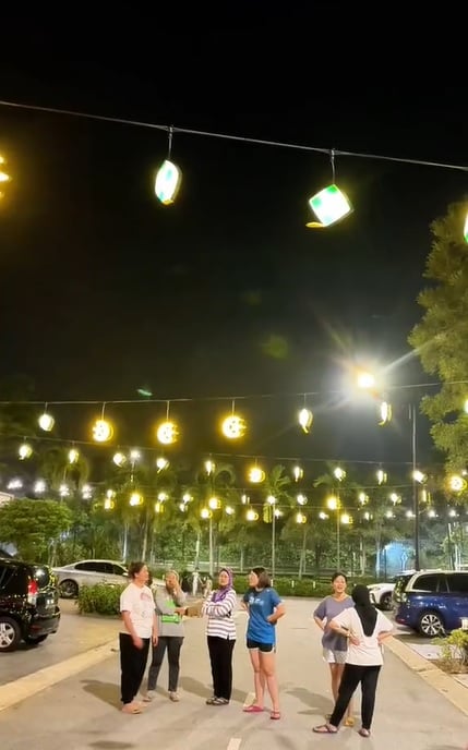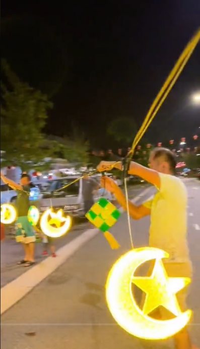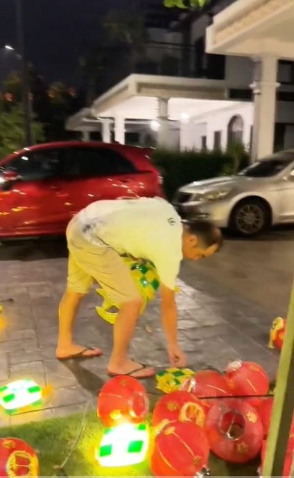 值得一提的是,视频中可看见现场不仅有准备挂上去的开斋节灯饰,还有刚拆下的农历新年红灯笼。