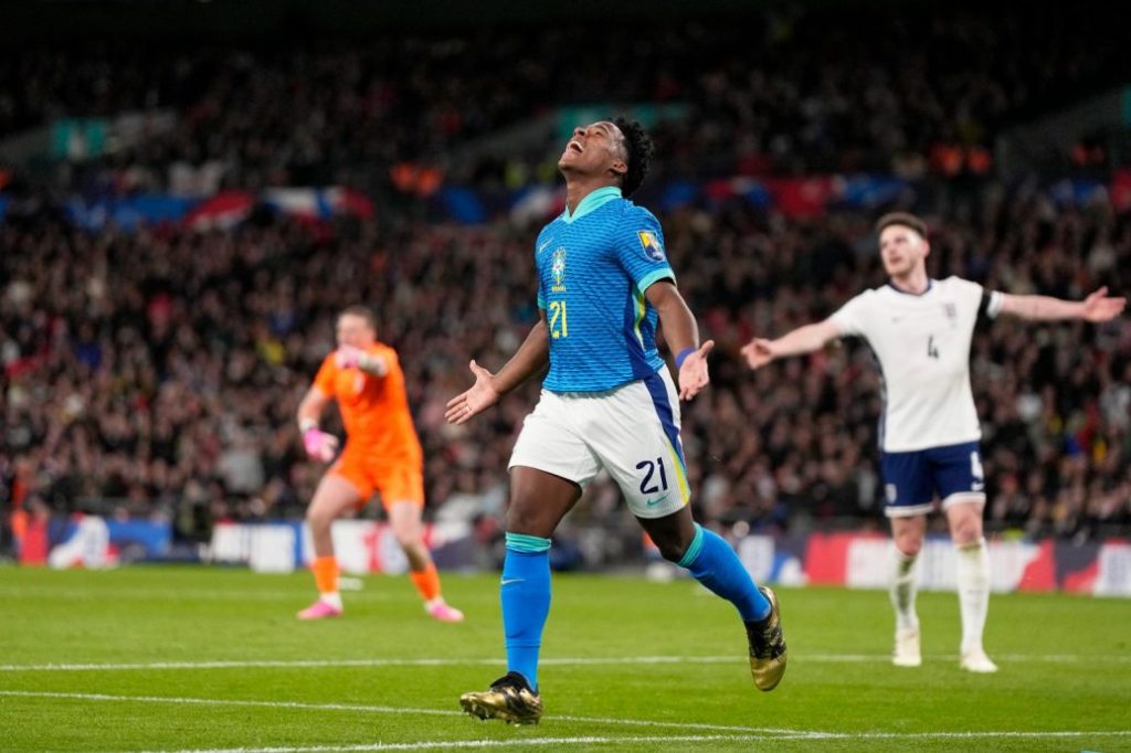 国际足球友谊赛 | 17岁恩德里克轰生涯首球 巴西1球拿下英格兰