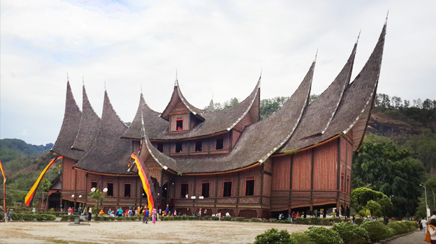 我让长者看手机里的照片,宏伟的森美兰州神安池皇宫。典型的米南加保特色建筑,再给他看旅程中我飞摩托两小时然后在里头参观许久的巴野固卜(Payakumbuh)米南加保博物馆。峇帕你看两个建筑风格很接近,这是我们那边出名的皇宫,建筑完全没有用一根铁钉。不过我们那边没有三色黑红黄的旗帜。峇帕专心看照片说哇你拍照技术很不错。这旗帜其实代表我们这边3个高原地区。峇帕接着说了几个地名,都是几年前我独骑经过之处。黑色代表Luak Lima Puluoh Koto地区,象征耐心和团结;红色是山城武吉丁宜、帕里曼及巴东,象征勇敢;黄色则表示文化及习俗发源地。当你进入不同地区,旗帜的颜色排列不一样啊。总算明白自己在博物馆读到的资料解说,还有几年前独骑时观察到怎么三色旗帜的排列不同。与君一席话,解我多年疑窦,偶遇的峇帕,是旅途中最强的向导。峇帕离开后,我继续呆在餐馆写背包日记。
