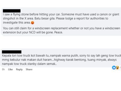 轿车司机哈敏德事后将行车记录仪视频上传到“YDLAA”脸书专页,画面显示轿车在大道行驶时遭飞石击中,导致挡风镜破裂。