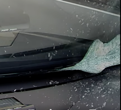 视频|大道草丛飞石窜出 击爆轿车挡风镜!