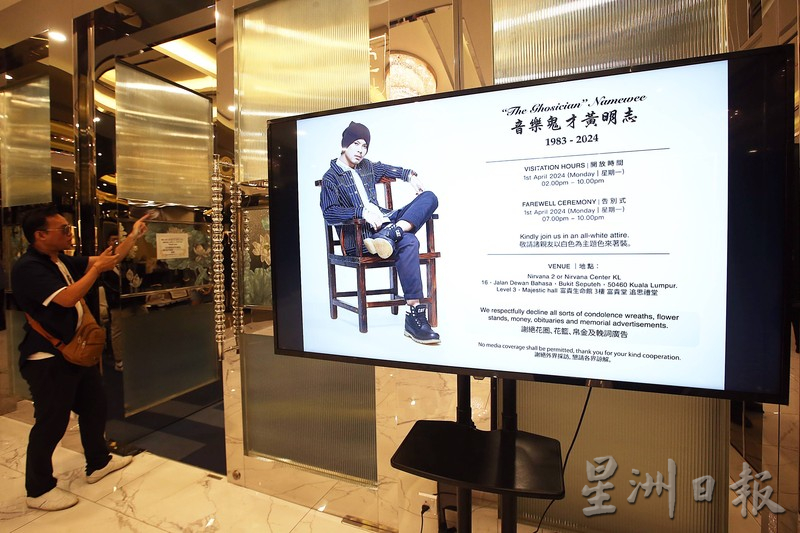 黄明志告别式在吉隆坡富贵生命馆举办,仪式于今晚8时30分开始。