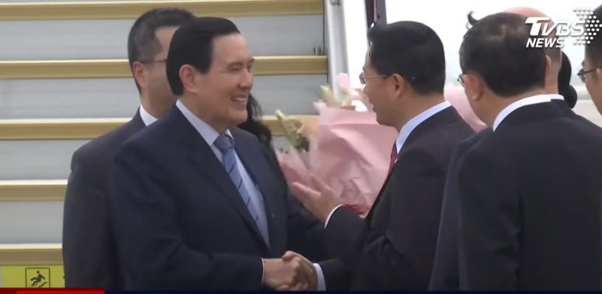 紧接着,前来迎接的国台办联络局长杨毅先从机舱走出来,马英九于2时37分走下机,马英九基金会执行长萧旭岑、前总统马英九办公室主任王光慈、政治大学东亚研究所名誉教授邱坤玄依序跟著下机。