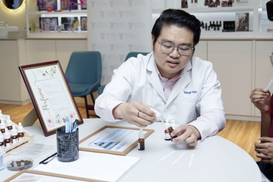 就在这个明亮、舒适的空间——“学生将学习化妆品和个人护理产品的配方、开发、测试和制造。实验室还设有香水混合模块,他们会学习香水和香氛混合的基本概念。”黄嘉玮说。