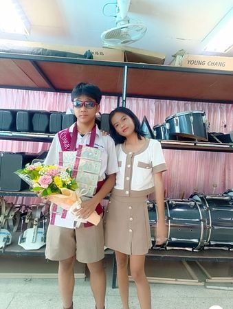 泰国《Sanook》报道,近日在泰国一个社团群组上,一名网民秀出一组少年与“正妹小女友”的合照,不少人看到这组照片,起初以为是少年与女友的合照,或是兄妹合照,后来真相揭晓,这名上传照片的网民、同时也是照片中的“小女友”回应:“我是他妈啦!”