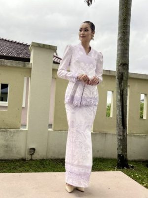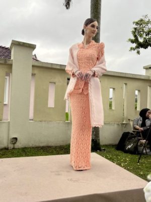 布料的选用、搭配,则是另一个精彩的组合,远望之下所有服饰都是单一色调,事实上在不同布料的搭配,还有花样雷蕾丝的点缀之下,让人印象中的传统马来服饰,显得格外多样化。细节上的处理,让每件作品都展露了不同的风韵。