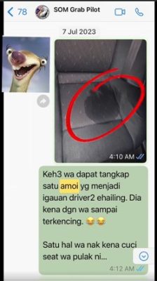 视频的最后,电召车司机还分享其乘客座位湿漉的照片,相信是A小姐的尿渍,令人作呕。