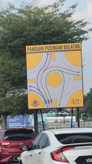 古来民生服务队日前在脸书上传照片,指古来IOI购物广场附近增设了一个特大型看板,以指导道路使用者如何正确地使用交通圈。