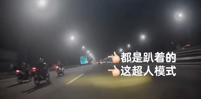 许男的行车记录器画面显示,当时有至少三名骑士以时速135公里以上飞驰而过,且三人皆趴在摩托车上呈超人模式。