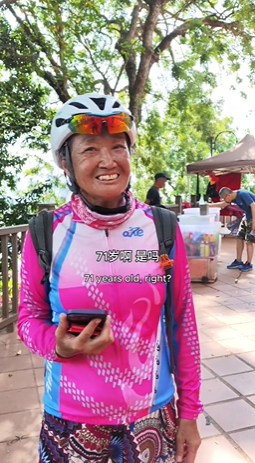 阿姨大方透露自己是1953年出生(71岁),让阿成惊呼“我第一次见到您这个年纪骑自行车过来,哇您这体力太好了!”