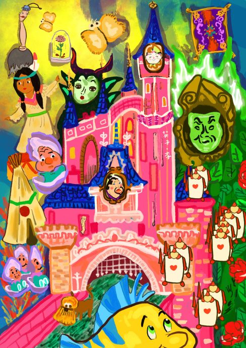 在我心中,迪士尼乐园就像宇宙,是从小伴我长大,也是奠定我性格的一大因素。美女与野兽里的茶壶妈妈与孩子、The Fox and the Hound里狐狸与猎犬分离的画面、永远不想长大的小飞侠、劫富济贫的Robin Hood……这些善良美好的画面塑造了大家认识的英子。