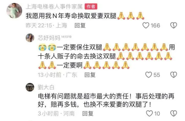 他也在评论区悲痛留言“我愿用我N年寿命换取爱妻双腿”,一众网民也纷纷留言为女子集气祈祷。