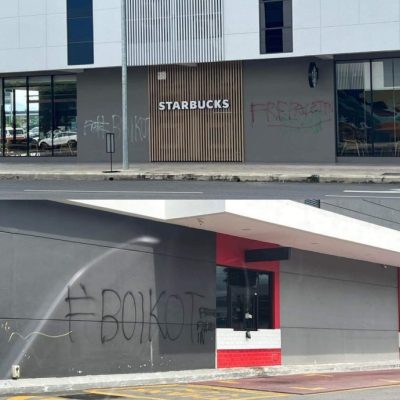 (斗湖19日讯)沙巴斗湖的星巴克及麦当劳分店遭人喷漆涂鸦,在墙上写下“杯葛”及“解放巴勒斯坦”的字眼。
