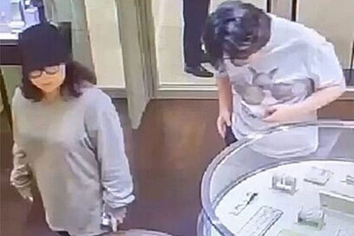 珠宝店经理告诉警方,工作时注意到国籍不明的一男一女进入店里,外貌看似韩国或中国人,他们挑选一些钻石首饰试戴,在趁着店员不注意,把黄金钻石手鍊藏在穿着的长袖衣服里,然后走出珠宝店。
