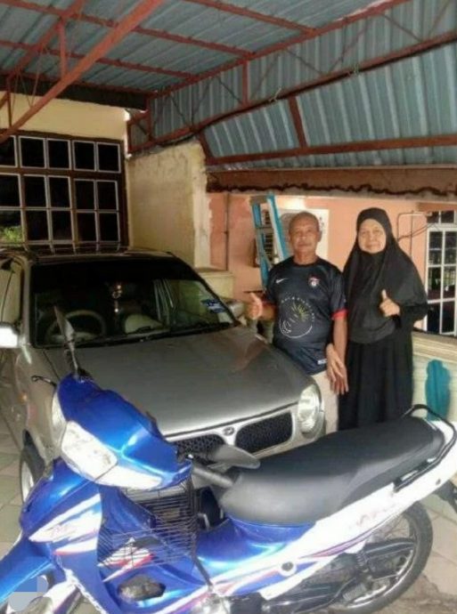 25岁的莫哈末凯鲁在TikTok发布视频,展示6兄弟姐妹将一辆二手Perodua Kancil及二手Modenas Kriss摩托送给如今分别65岁和63岁的父母。