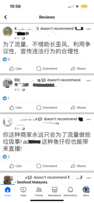 本地商家接连邀请女奥客A小姐直播带货,引起广大民众不满,多数人都谴责商家鼓吹歪风,涌入其脸书专页留下一颗星差评。