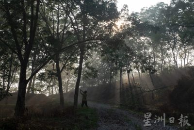如今,额头上顶一盏灯,在破晓的天色中工作的割胶工人,已不多见。住在哥打丁宜的苏巴马廉,是少数的胶工之一。