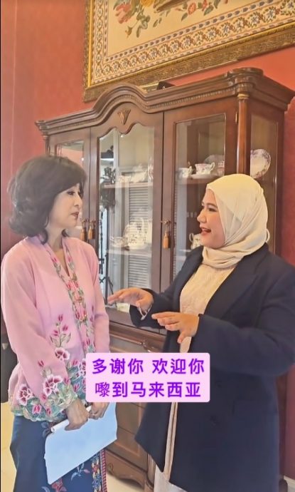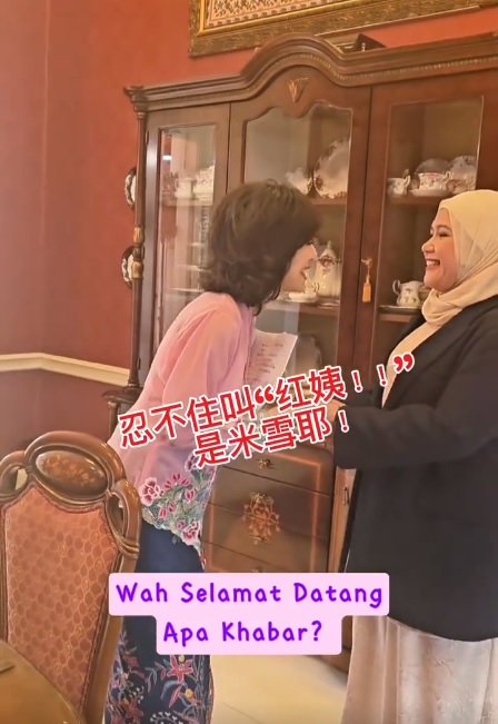 这名女子是RTM电视台华语新闻主播拉丝达(Rasyidah),她在IG和小红书分别上传视频,分享心中的喜悦,而她口中的“红姨”,就是日前与港星石修来马拍摄剧集《名门》的米雪。“红姨”是米雪在港剧《溏心风暴3》里的角色。