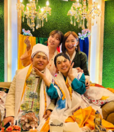 她在Instagram限时动态发布婚礼片段,可见她和丈夫Palden Moktan身穿传统婚服,进行包括把米黏在额头的传统仪式,以接受亲友的祝福。