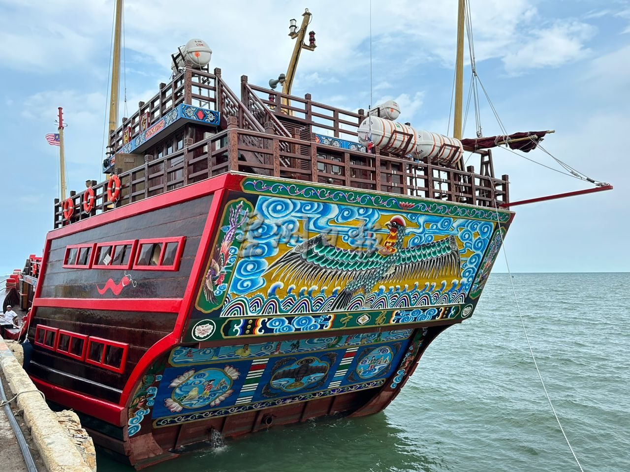 值得一提的是,马六甲州元首敦莫哈末阿里及甲州首席部长拿督斯里阿都拉勿夫将于本月5日登船参观这艘全长41.6公尺、宽12公尺、高度达29公尺的仿古福船。