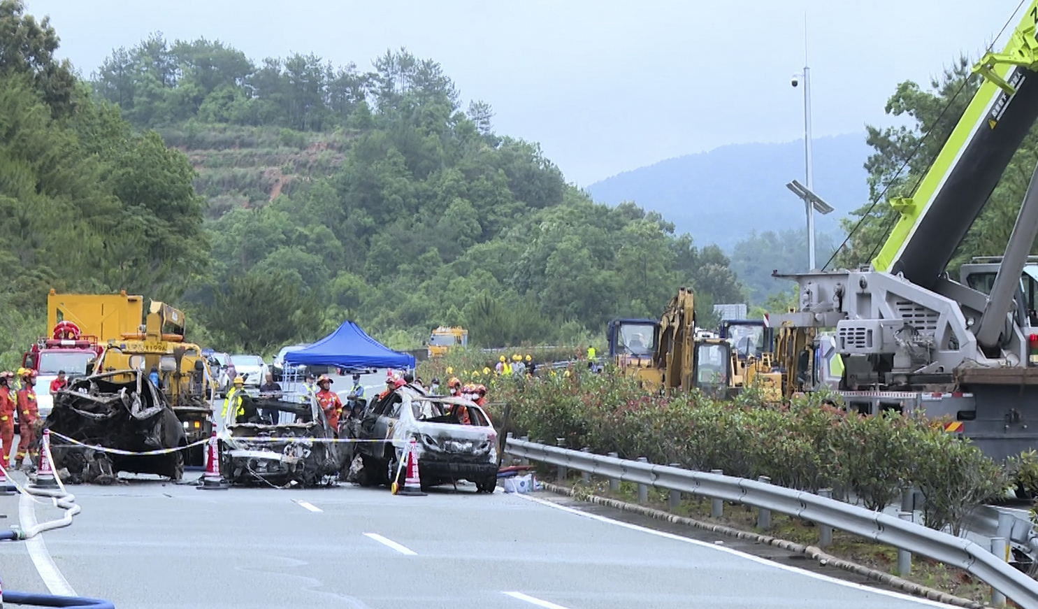 事故发生后,广东省成立事故救援现场指挥部,包括公安、应急、消防、卫健、交通、矿山救护队等投入500多人参与救援。目前梅大高速双方向车道已全部封闭,事故原因正在调查。