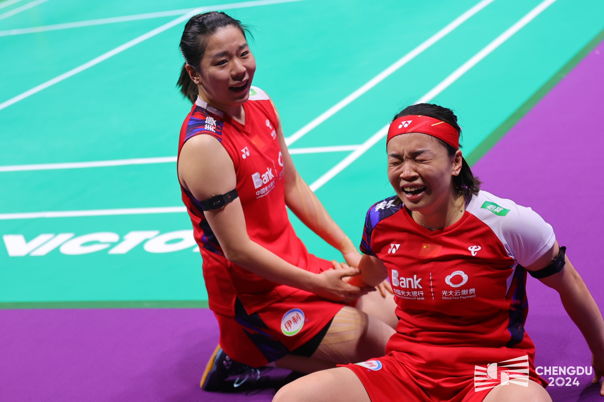 随后第一双打,中国世界冠军陈清晨与贾一凡在历经85分钟激战后,以14比21、21比13、23比21逆转日本世界第4名的“山羊组合”志田千阳与松山奈末。