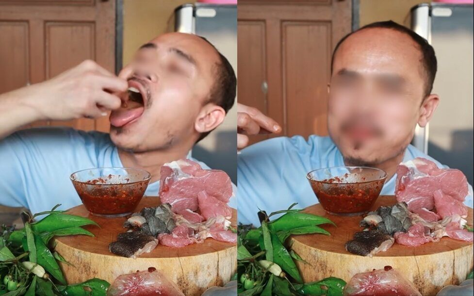 泰国鲜闻网报导,这名网红在脸书拥有2万多名粉丝。在视频中,他准备了各式生肉放在一块木质砧板上,并摆上一碗红通通的辣椒酱,一旁则是有许多搭配食用的香料。
