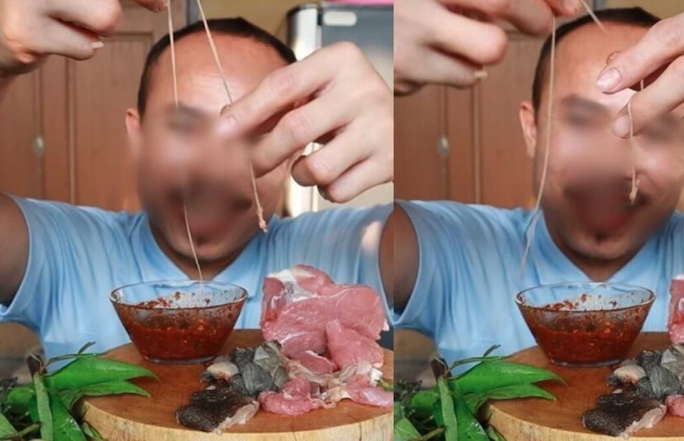 泰吃播生肉发现寄生虫 拉出长长一条活吞下肚