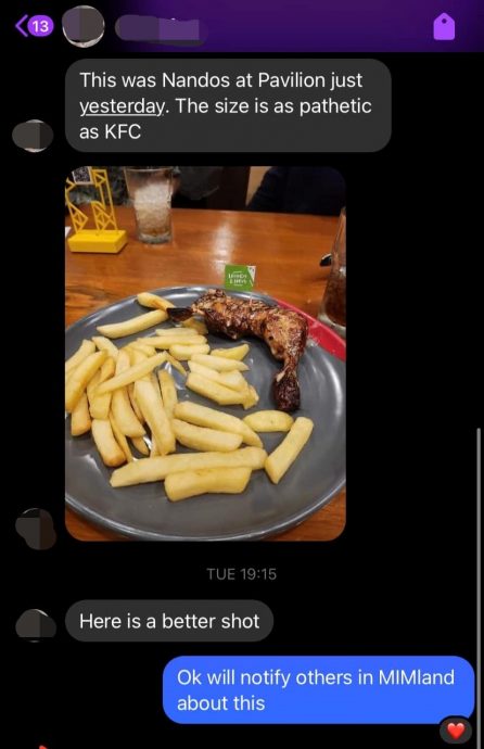 部分网民也指出,他们皆曾遭遇同样的事情,促请Nando’s严正看待这一问题,确保食物质量受控,不要等待事情发酵后才来补救。