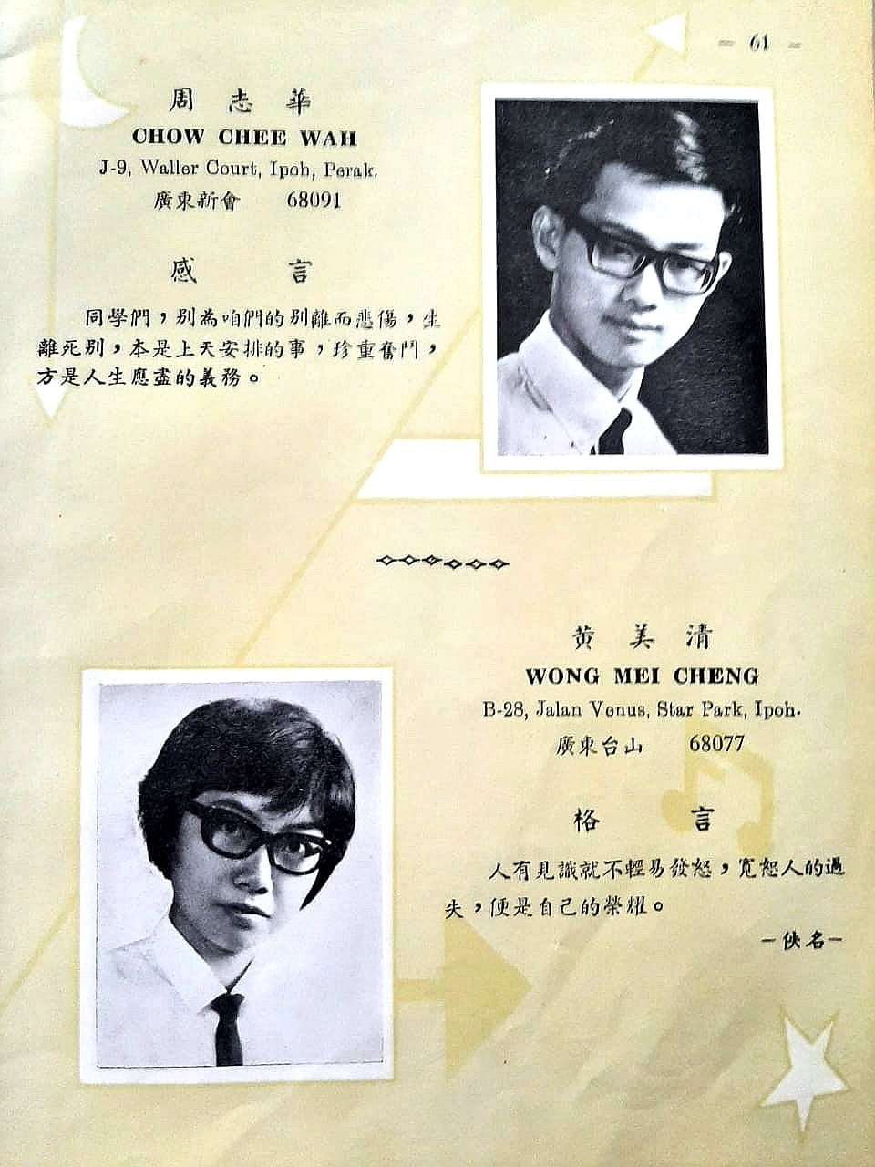 星洲日报有我的朋友——周志华,是我的中学同学,我们已经有55年的友谊了。志华毕业后从1970年开始任职于星洲日报广告部书记一职,不离不弃的在报馆服务至退休,至今退休也有14年了,真为星洲日报欣喜,曾经有这位忠诚的职员。