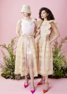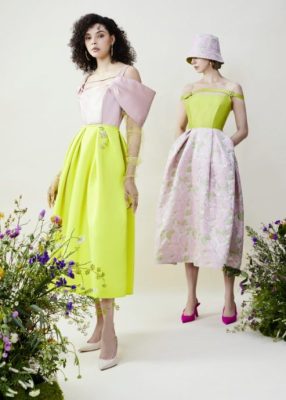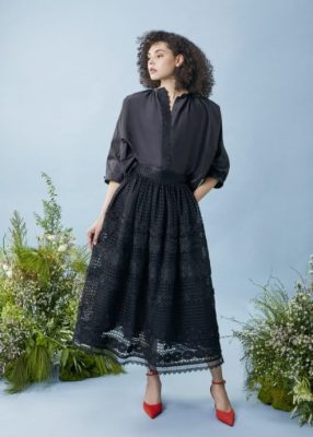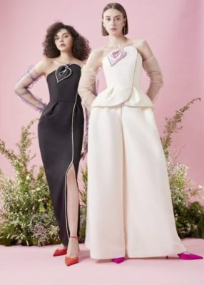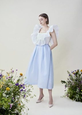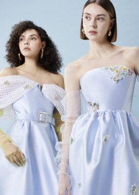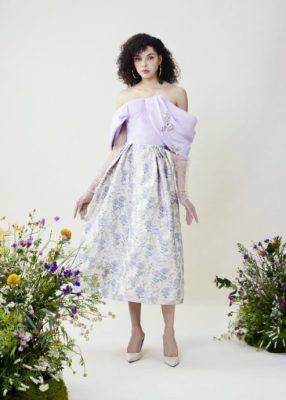 在布料材质方面,Khoon Hooi今季依然沿用了最能展示其风格的标志性面料——塔夫绸、锦缎和缎子。同时也首次在设计里加入复杂的钩针蕾丝,提升了服饰的立体感之余,也捎来柔和温婉的风情。