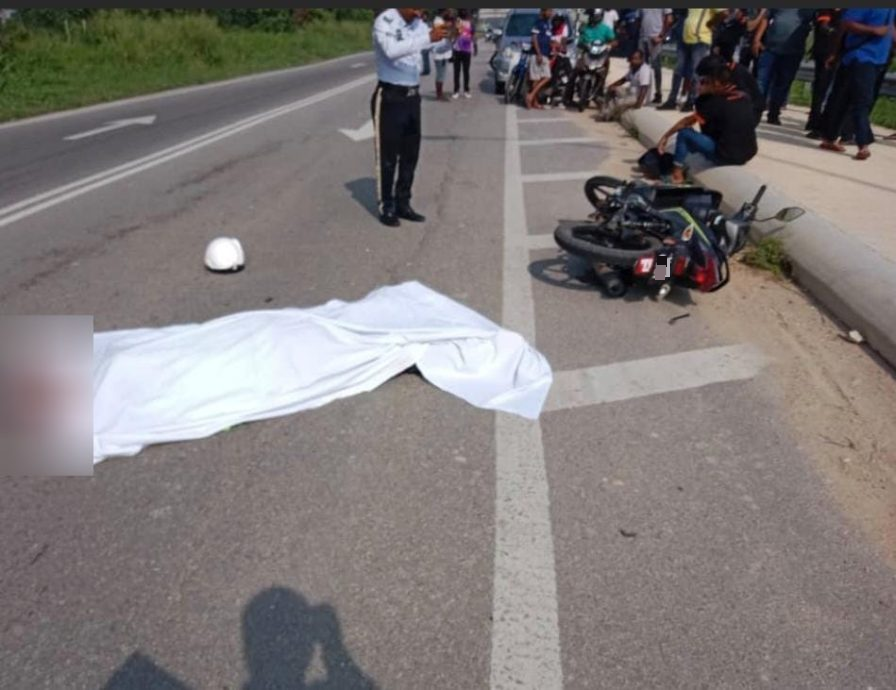 (巴生8日讯)摩托车骑士欲超越前方拖格罗里不成,撞上脚踏车时失去平衡摔跌在路上,结果惨遭拖格罗里辗过,当场毙命!