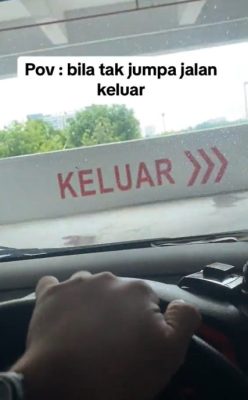 视频显示,他一直跟着“Keluar”(出口)字眼行驶,却不断回到原点,不断看到同样的工作人员和车辆,却始终无法找到出口。