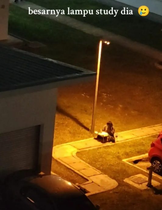 根据网民@ameirfann在TikTok发布的视频,从敦胡先翁大学(UTHM)宿舍里拍出去,可见一名女学霸在街灯下认真温习课业。