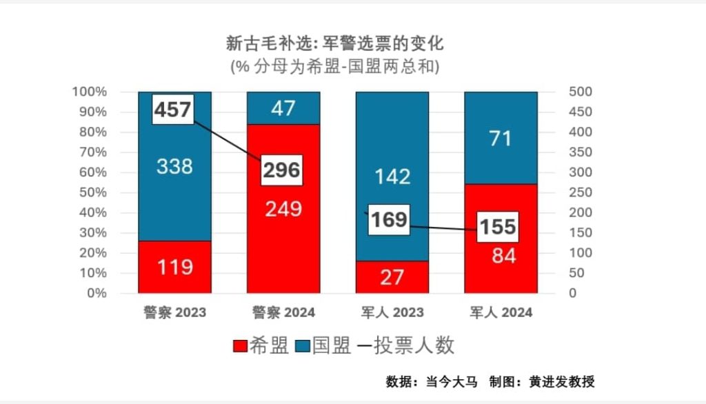 “自2018年以来,军警票就流向伊党/国盟,他们大多数都抛弃了巫统,但却无法把选票转投希盟。但在本次补选中,警察对希盟的支持率从26%增至84%,而军人的支持率也从16%升至54%。”