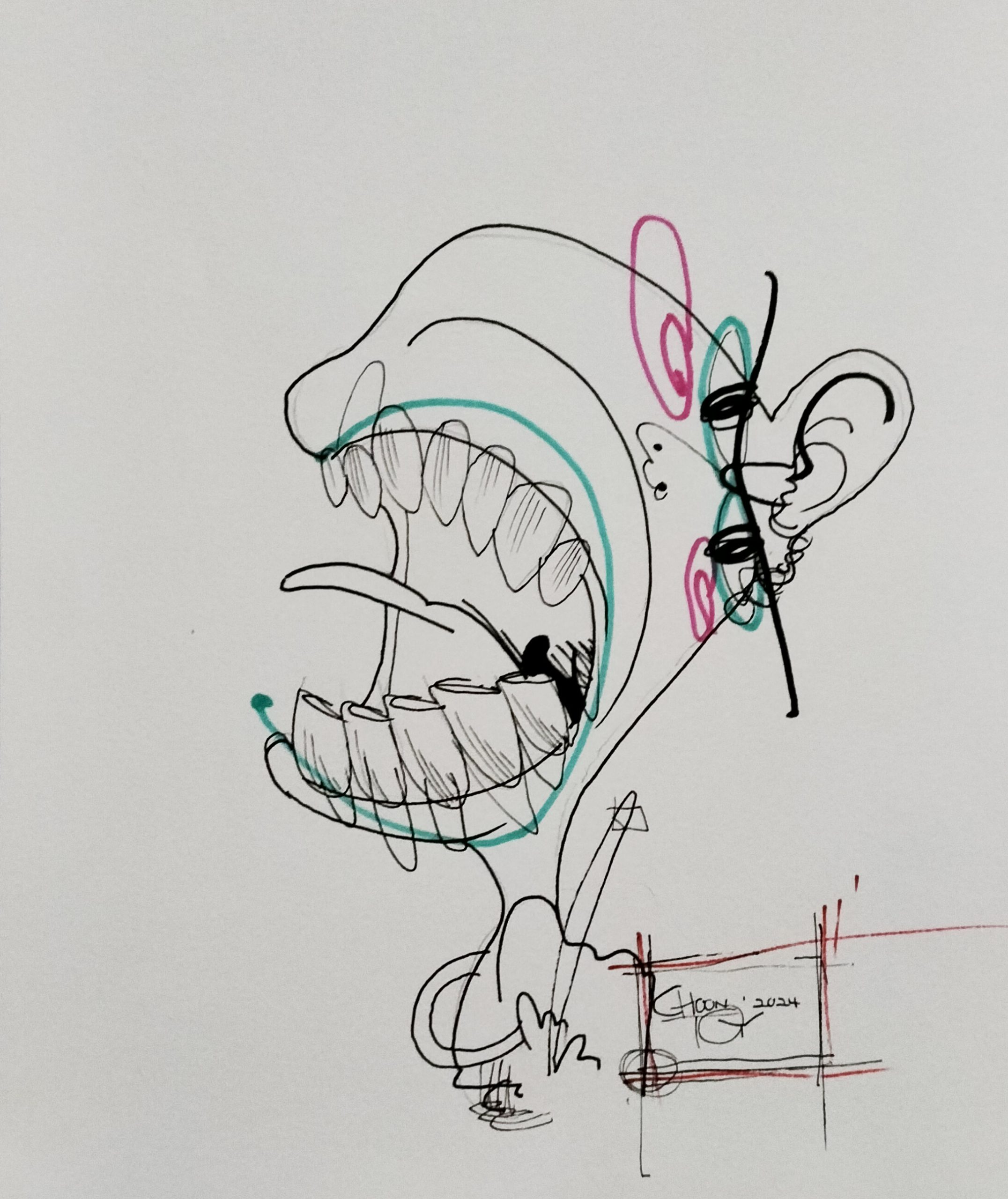 已进入中年的我, 现在的心境, 会倾向于简化,草稿式,涂鸦的表现手法。 对艺术家而言,“技术”只是一种绘画诠释手段,犹如相机与电脑人工智能AI,不是不重要, 而是艺术家想要更注重所谓精神层次方面的满足与描绘。是个人的选择。