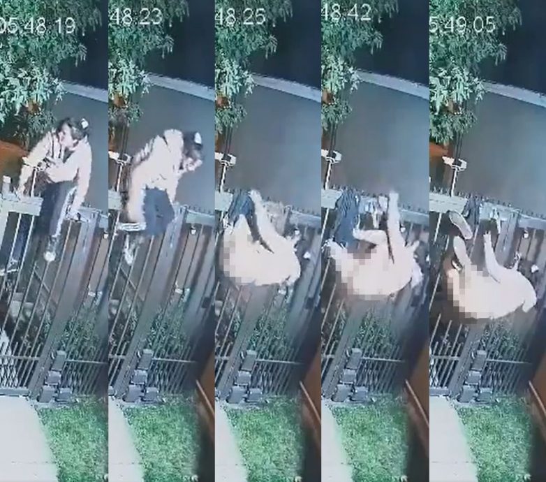 女贼潜豪宅失手 裤子被围栏扯脱超狼狈