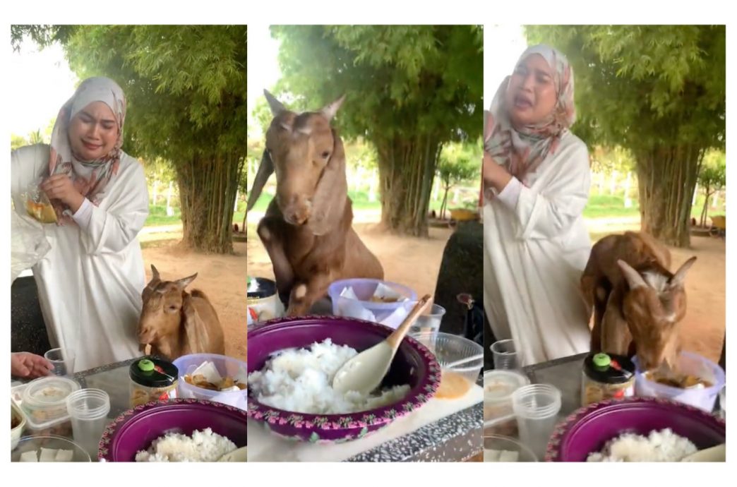 她表示,当她们结束用餐并准备清理时,突然不知从哪里跑来一只山羊,还直接爬上桌子吃她们留下的剩菜。