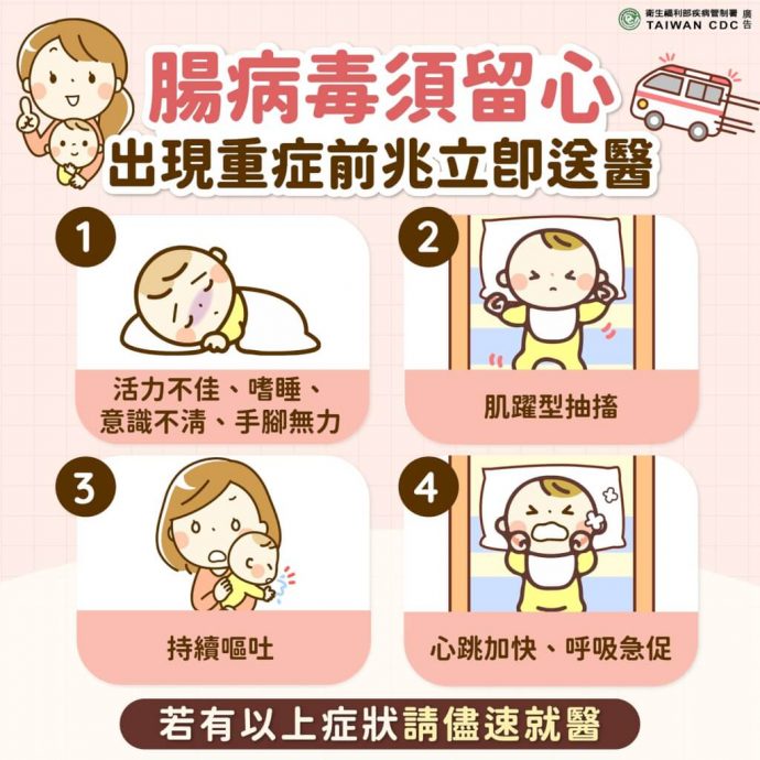 卫生福利部疾病管制署发言人曾淑慧在疫报记者会上表示,肠病毒健保急门诊就诊人次较前周增加,目前仍处流行期,疫情持续上升,预估疫情高峰将落在5月底、6月初。