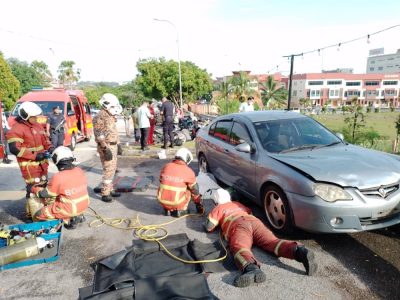 车祸涉及一辆宝腾Persona,轿车在行驶途中突然失控打滑,撞向一名行走在路上的印尼籍女路人,导致她被卷入车底。