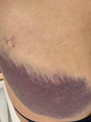 (台北18日综合电)台湾立法院昨天处理改革法案,民进党团发动攻势,企图占领主席台杯葛议事,民进党立委钟佳滨抢攻主席台时,撂倒国民党立委陈菁徽,导致她重摔两次,过程并触及她的臀部,陈菁徽臀部的瘀青照在今天曝光,大规模瘀青受伤。