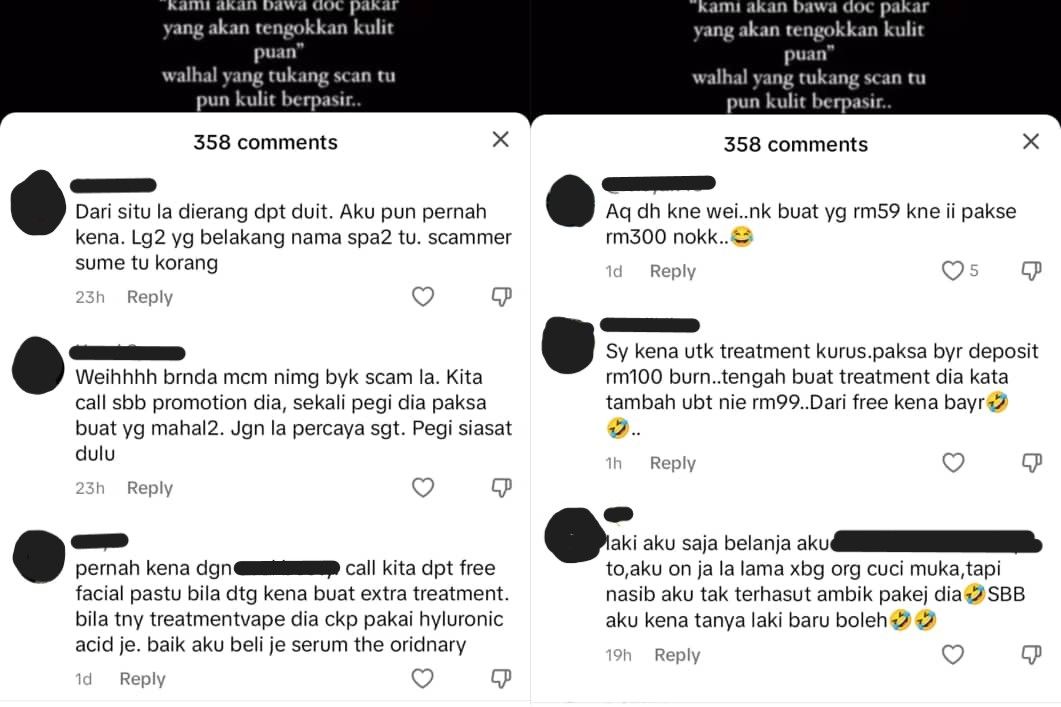 “当我们在做头皮检查时,工作人员突然告诉我们要做一个费用为5000令吉的治疗。